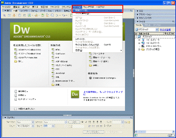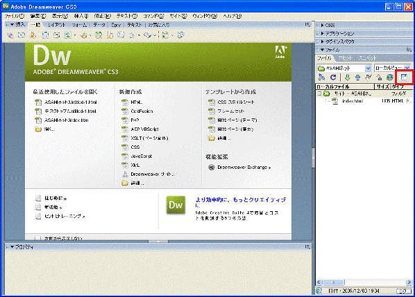 1. Adobe Dreamweaver CS3を起動します。