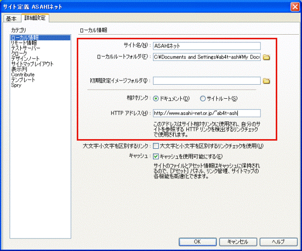 サイト定義 ローカル情報