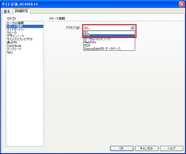 サイト定義 リモート情報