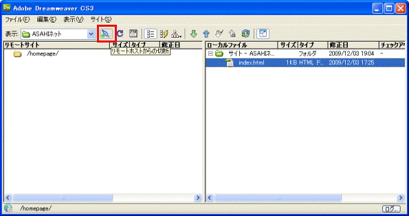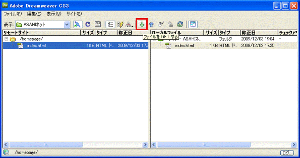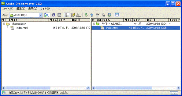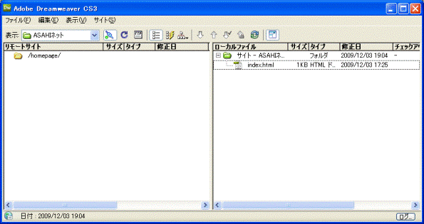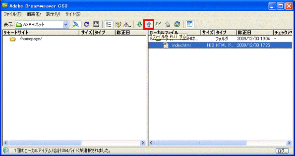 Adobe Dreamweaver CS3を利用し、ホームページデータをアップロード (転送)するための設定や