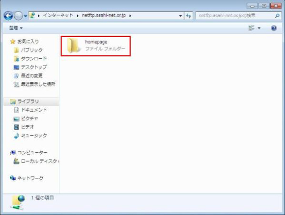 4. FTPサーバ上のフォルダが表示されるので、任意のフォルダにアクセスし、