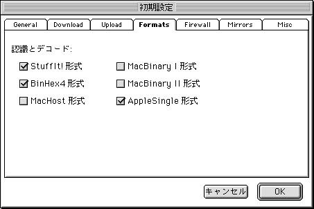 7. 「Stufflt!形式」「BinHex4形式」「AppleSingle形式」にチェックを入れ、