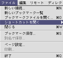 1. 「ファイル」メニューの「ショートカットを開く」から作成済みの設定名を選択し、