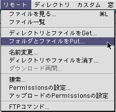 2. 「リモート」メニューから「フォルダとファイルをPut...」を選択します。