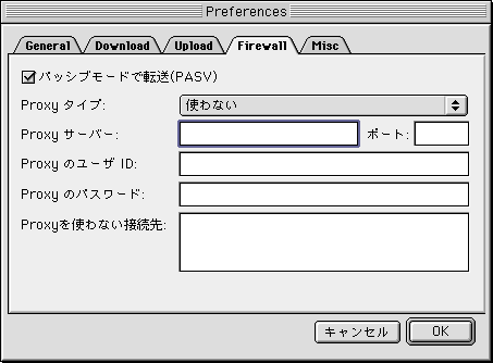 7. 「パッシブモードで転送 (PASV)」にチェックを入れ、