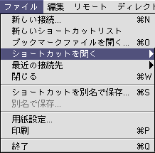 1. 「ファイル」メニューの「ショートカットを開く」から作成済みの設定名を選択し、