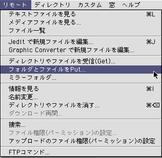 2. 「リモート」メニューから「フォルダとファイルをPut...」を選択します。