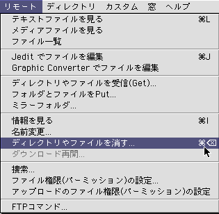3. 「リモート」メニューから「ディレクトリやファイルを消す...」を選択します。
