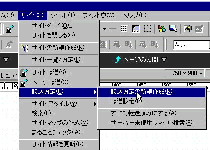 「サイト」メニュー→「転送設定」→「転送設定の新規作成」を順にクリックします。