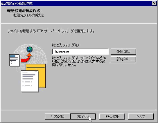 | 転送先フォルダ | 個人ホームページサービス | homepage |