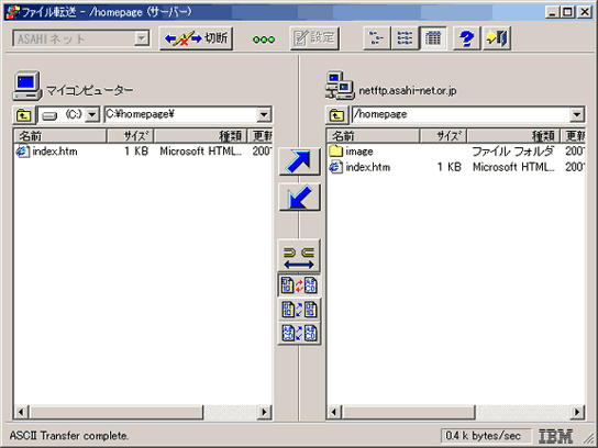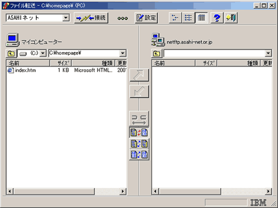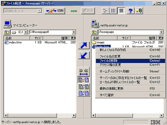 「IBM ホームページ・ビルダー 6」→「ファイル転送」を順にクリックします。
