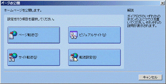 1. 「ページの公開」画面で「ページ転送」ボタンをクリックします。