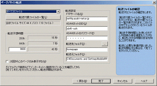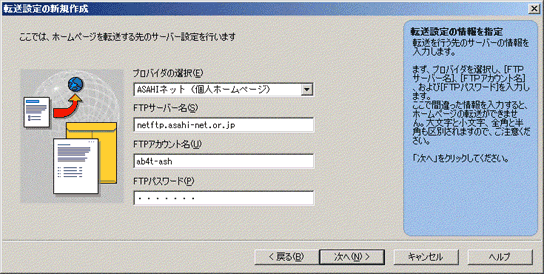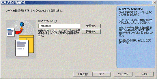 | 転送先フォルダ | 個人ホームページサービス | homepage |