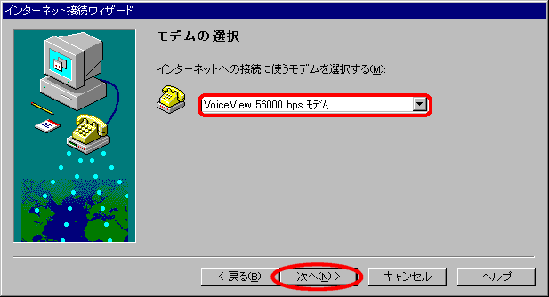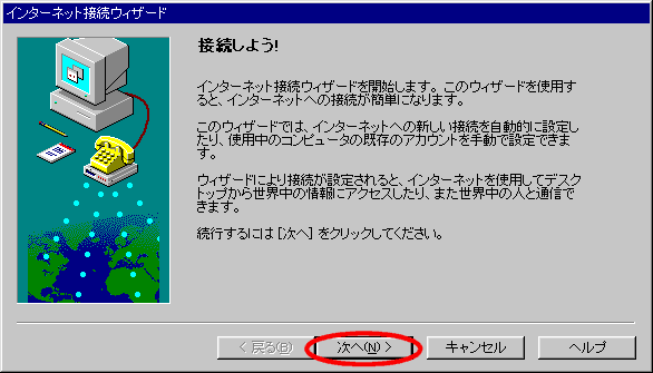 Windows95 インターネット接続ウィザードでの接続設定