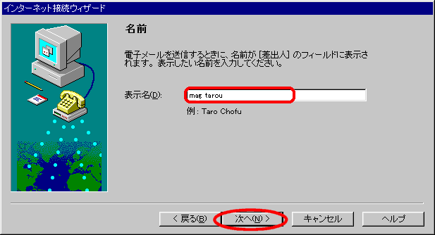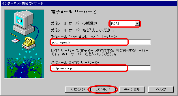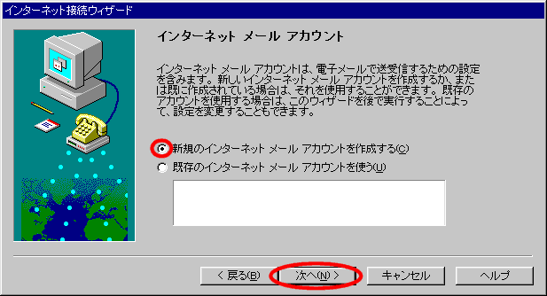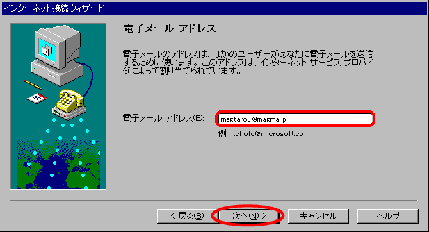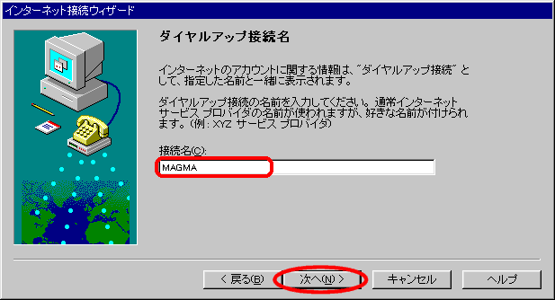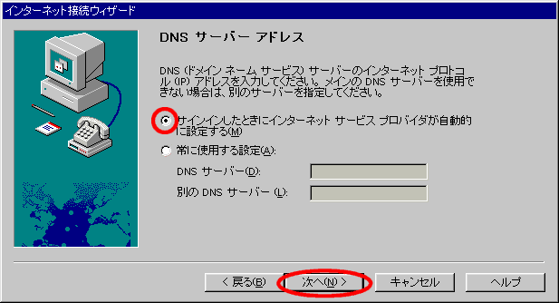 Windows95 インターネット接続ウィザードでの接続設定
