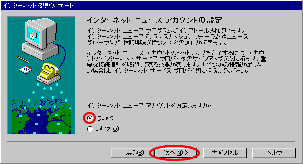 「インターネットニュースアカウントを設定しますか?」で