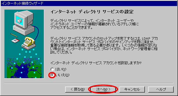 28.「インターネットディレクトリサービスの設定」の画面が表示します。