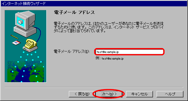 「新規のインターネットメールアカウントを作成する」をチェックして「次へ」進みます。