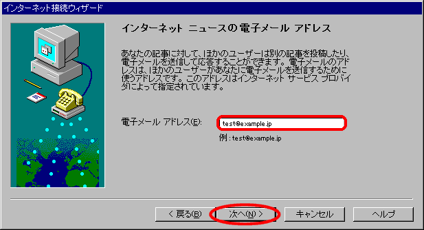 26.「ニュースアカウント名」 これも「test@example.jp」で結構です。