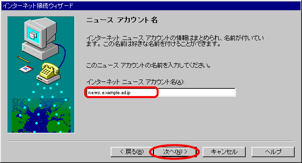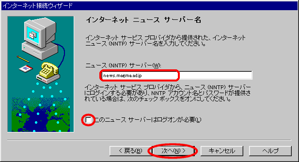 「このニュースサーバーはログオンが必要」の欄はチェックなしで結構です。