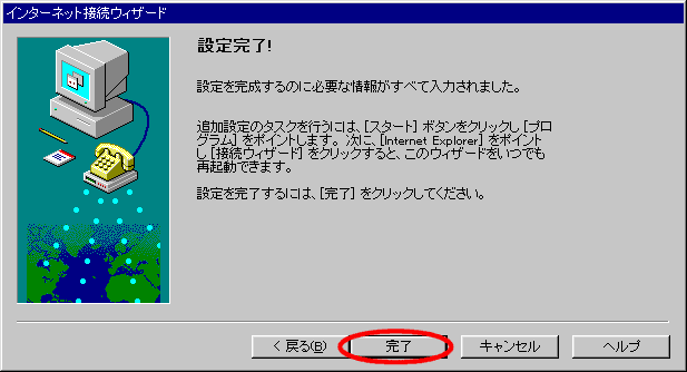 これでダイアルアップとインターネットメール、ニュースの設定が完了しました。