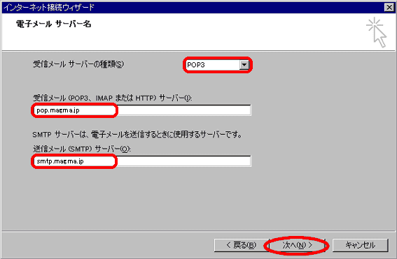 送信サーバー名 : 登録証記載の送信(SMTP)サーバ