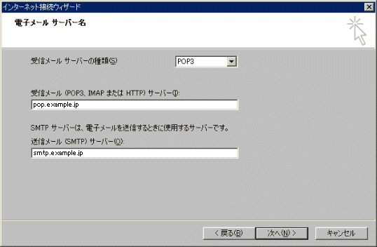 受信サーバー名 : 登録証記載の受信(POP)サーバ