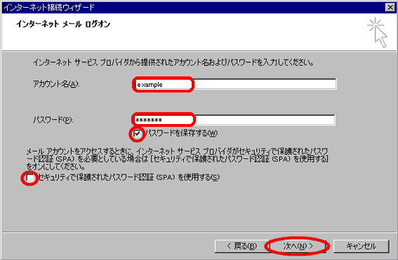 送信サーバー名 : 登録証記載の送信(SMTP)サーバ