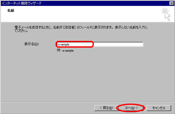 「表示名」にご自分の名前を入力してください。(日本語、英語どちらでも結構です)
