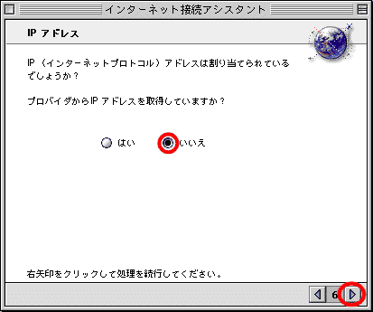 9.IPアドレスはプロバイダから自動的にわりあてられるので、「いいえ」をチェックします。