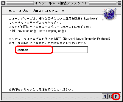 13.ニュースサーバー名を入れます。 news.example.ad.jp です。
