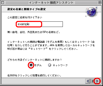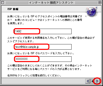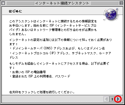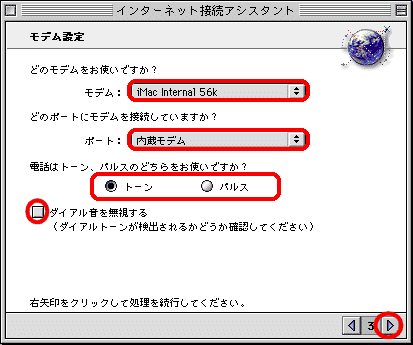 Macintoshの「インタ-ネット接続アシスタント」を使ってのダイアルアップ設定方法