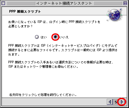 8.PPP接続スクリプトは必要としないので、「いいえ」を選びます。