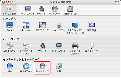 2. [ システム環境設定 ] から [ ネットワーク ] ボタンをクリックします。