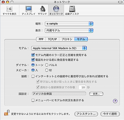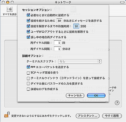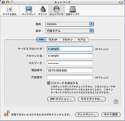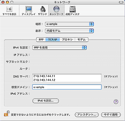 MacOS X(10.3) インターネット接続設定