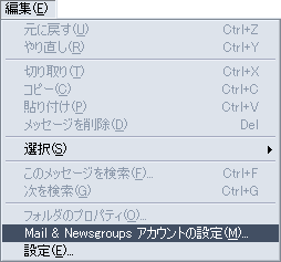 メニューバーの「編集(E)」から「Mail & Newsgroups アカウントの設定(M)...」を選択します。 |