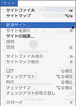 ![]() | Dreamweaver を起動し、[サイト] メニューから [新規サイト] をクリックします。 |