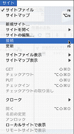 ![]() | [サイト-任意の名称] 画面が表示されますので、[サイト] メニューから [接続] をクリックします。 |