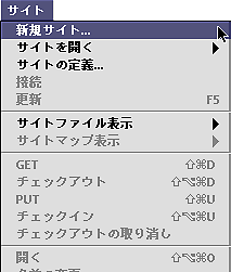 Dreamweaver を起動し、[サイト] メニューの [新規サイト] をクリックします。 |